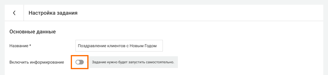 Даже если автоинформирование по заданию уже началось, вы в любое время можете его остановить. Для этого на вкладке «Задания» – «Активные» найдите нужное задание, кликните по нему и в открывшемся окне настройки передвиньте переключатель «Включить информирование» влево.