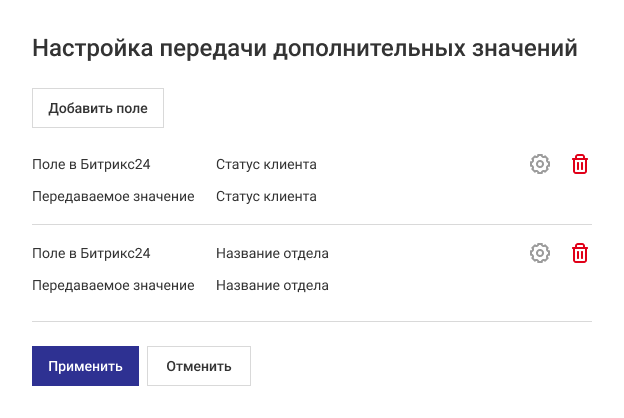 Чтобы возобновить передачу данных, добавьте поле в Битрикс24 и заново сопоставьте его в АТС с нужным значением.
