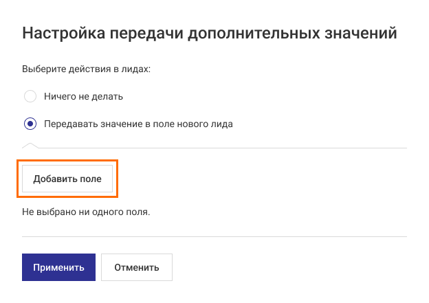Чтобы новые поля отображались в карточке лида:1. Найдите в карточке раздел с информацией о лиде и нажмите «Выбрать поле».