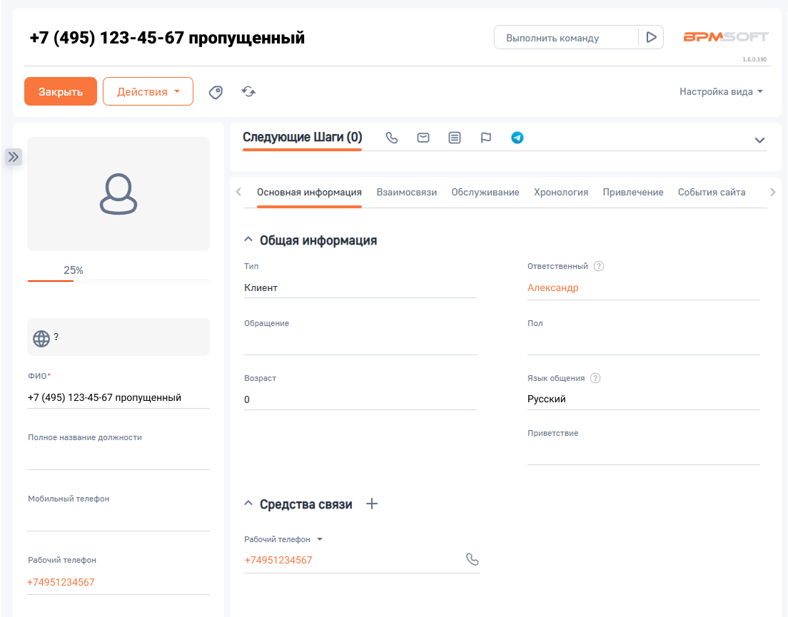 Одно из главных правил успешного бизнеса – фиксировать каждый звонок и каждого позвонившего. Даже если ваш менеджер не успел или забыл создать контакт или лид, вы все равно не упустите этого клиента. Необходимая информация о контакте и лиде сохранится в BPMSoft автоматически, менеджер в любой момент может вернуться к ней и продолжить работу с клиентом.