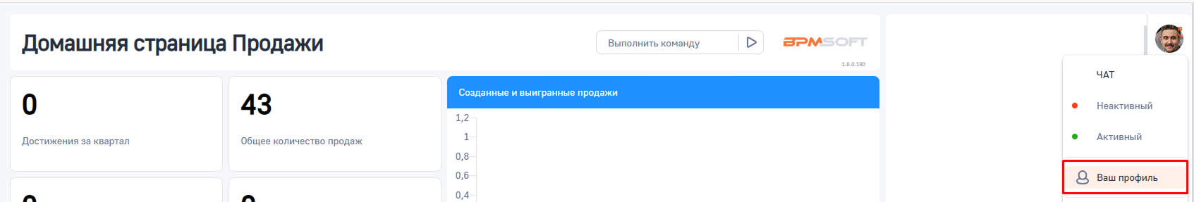 1. Нажмите на фото профиля в BPMSoft и выберите «Ваш профиль».
