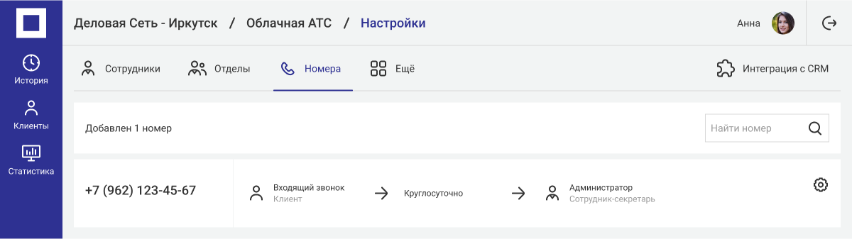 Сначала необходимо создать сотрудника и номер, которые будут использоваться для переадресации звонков в calltracking.ru.