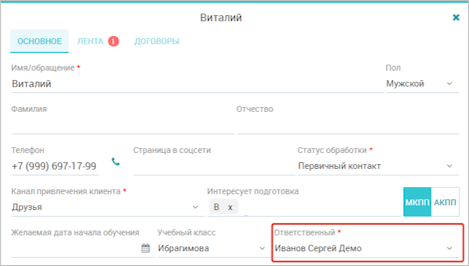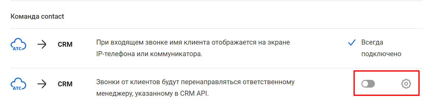 Также сервис передает в АТС логин сотрудника, который назначен ответственным за клиента/договор.