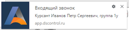 При поступлении звонка сотруднику Автошкола-Контроль отправляет push-сообщение с указанием ФИО клиента/договора сотруднику, которому поступает звонок.