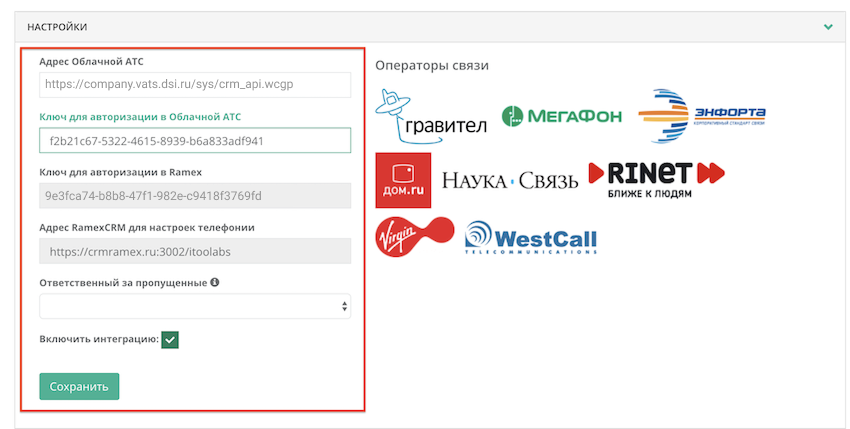 6. Нажмите “Сохранить“ в АТС, а затем в Ramex.