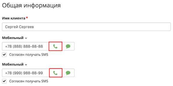 История звонков в карточке клиента