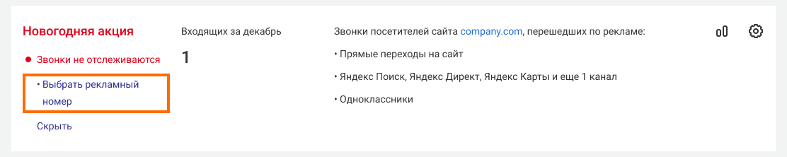 6. Выберите номер, звонки на который будут считаться переходами с выбранных рекламных каналов.
