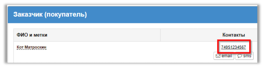 В верхнем правом углу карточки нажмите на номер телефона, чтобы совершить звонок.