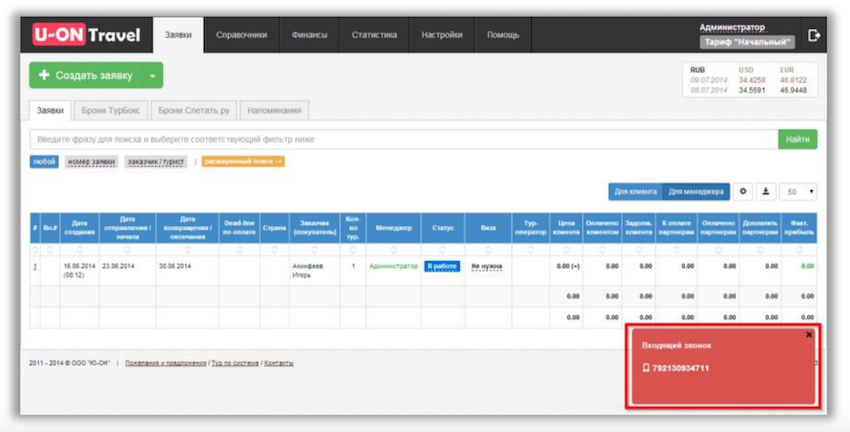 U-ON.Travel - это удобная и функциональная программа для туристических компаний, которая позволит наладить эффективный рабочий процесс.