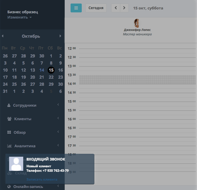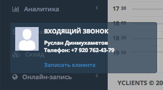 Интеграция с АТС позволит вам уже при входящем звонке видеть имя звонящего клиента и не переспрашивать номер телефона при записи. Вся история и записи звонков будут зафиксированы в карточке клиента.