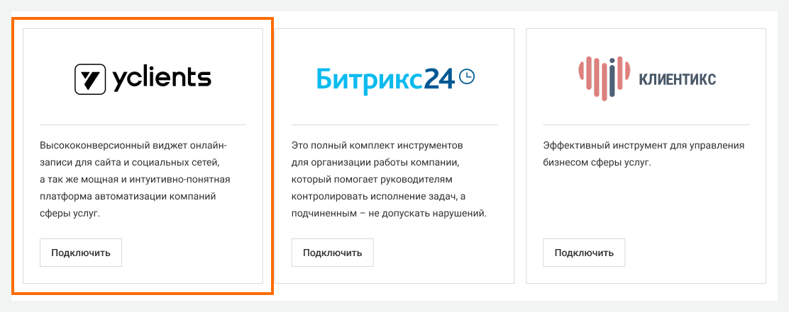 Вы снова окажетесь в общем окне интеграций, но теперь статус виджета YClients изменится на «Подключено».